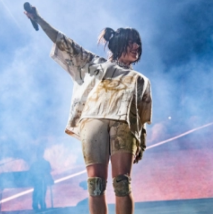 Clearly relishing her time onstage, Eilish did a victory lap at show’s end, blowing kisses to her fans and waving enthusiastically as she exited .