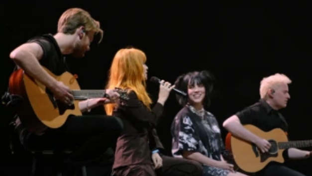 “Misery Business” was perfectly tailored to both singers’ powerhouse vocals, with Williams belting the first verse and Eilish jumping in to add a lower harmony to the chorus. “We sound good,” Williams said before Eilish added her signature whisper-style tone to the second verse.