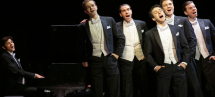 It’s an appropriate venue for the show, a true-life tale of “the three Jews and three Gentiles” behind The Comedian Harmonists. This pre-Nazi-era, tightknit singing-and-slapstick act — an ensemble “hotter than horseradish” — was so popular in Germany (packed concerts, hit singles, films), then around the world, that “Harmony” starts not at home, but at the height of its powers on Dec. 16, 1933, at New York’s Carnegie Hall.