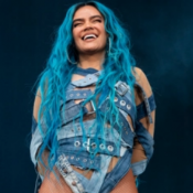 Nothing but blue wigs at the #BICHOTELLA ???? Karol G is taking Coachella! ???? #Coachella ????????♀️ pic.twitter.com/k2ZSrxahWO