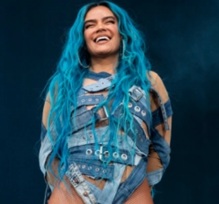 “Next stop — Coachella!” could be heard as the reggaeton and Latin trap singer made her entrance onto the barrio-themed stage, emblazoned with the words “Tusa” and “Bichotella.” Blue wigs flooded the rows of enraptured fans that watched Karol serve every line through a smile that stayed throughout the entirety of her hour-long set.