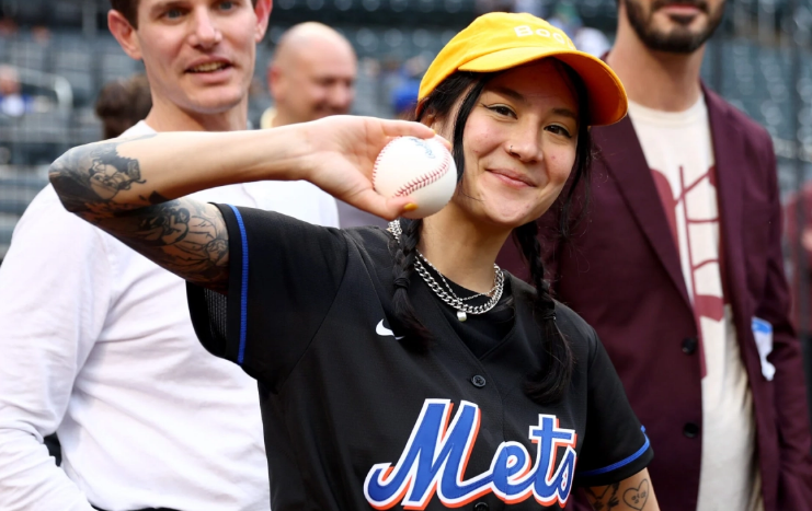 While Zauner wore her custom #69 Mets jersey with “JBREKKIE” emblazoned on the back, she was not-so-secretly rooting for the opposing team, the Philadelphia Phillies. “My socks / heart,” Zauner captioned a close-up of her ankles, which bore the Fightin’ Phils’ Phanatic.